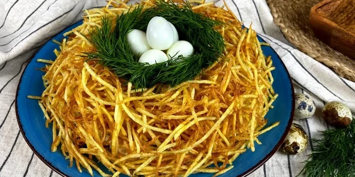 Az eredeti saláta „Fajdfészek” vagy „Fürjfészek” ideális változata annak, hogy mit készítsünk az ünnepre. A recept nem bonyolult és mindenki számára elérhető. És az eredmény olyan ízletes, hogy senki sem fogja megtagadni az újratöltést.